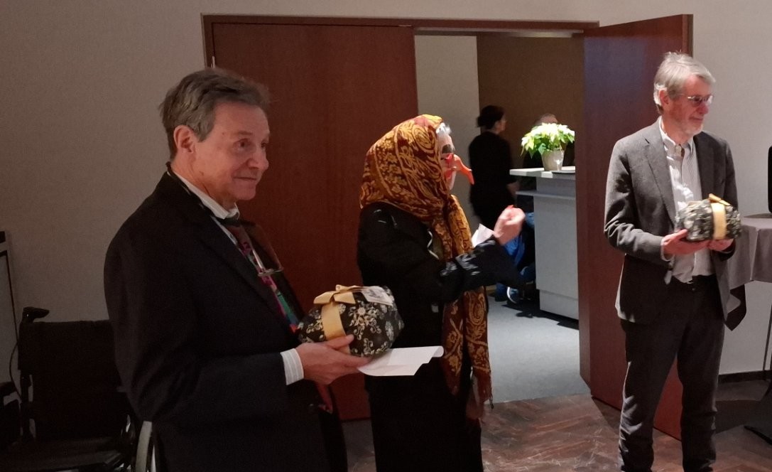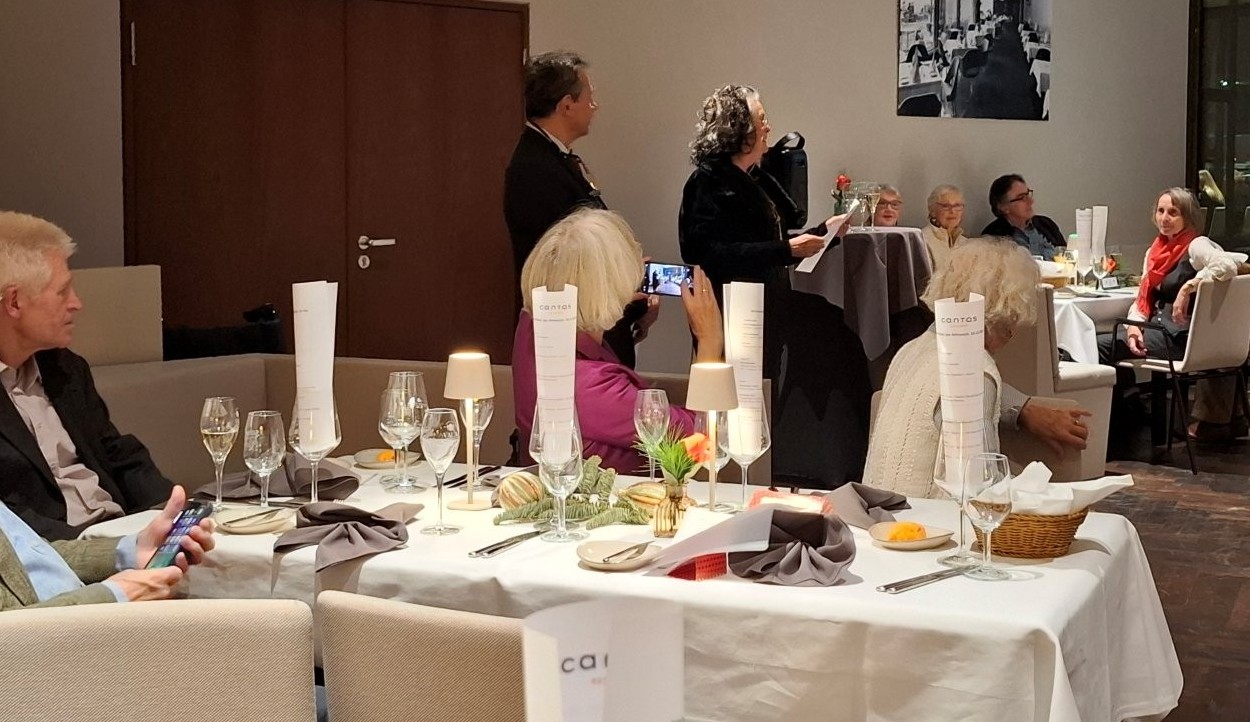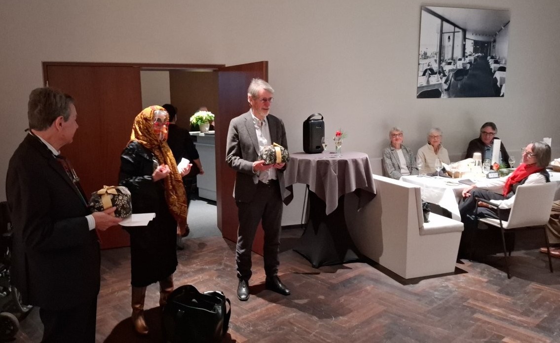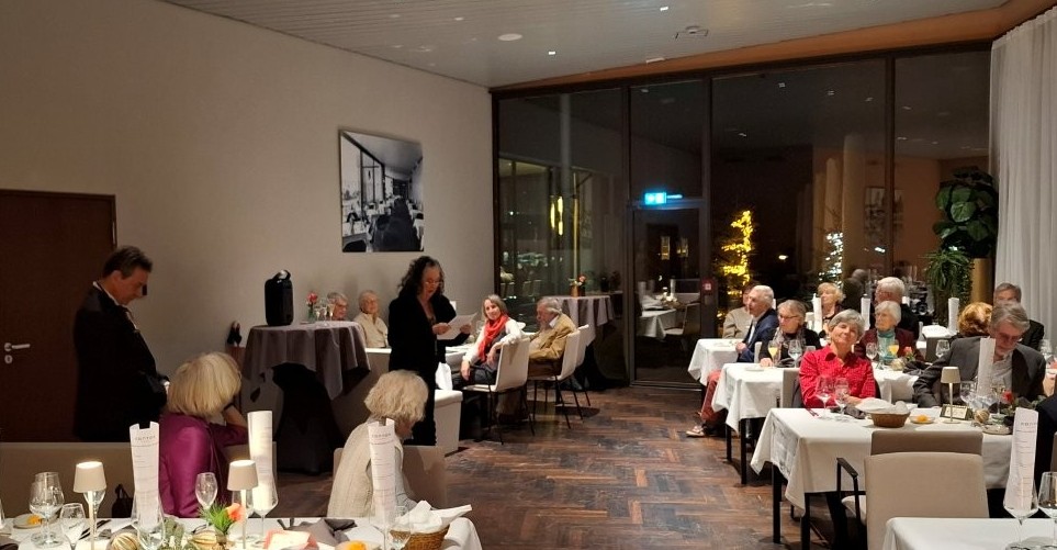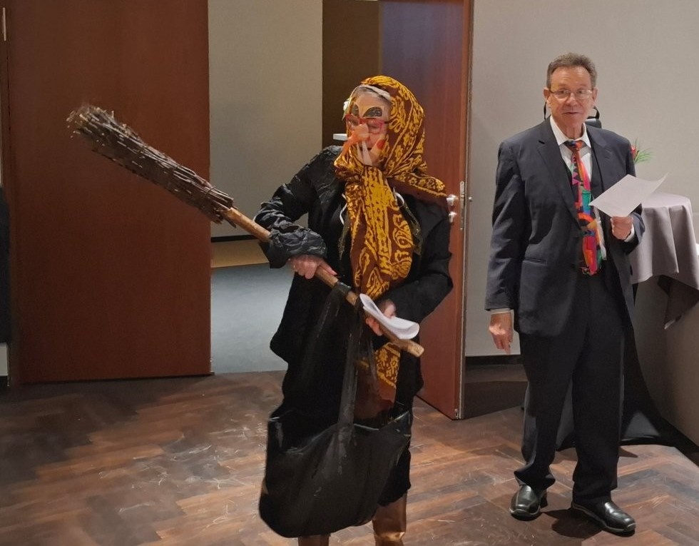 Das war eine festliche Weihnachtsfeier, wie noch nie zuvor und ein Geschenk von Kersten an die GIK. Nur über seine Kontakte war es möglich, diesen Raum vor der offiziellen Eröffnung der Beethoven – Halle buchen zu können. Auch das Programm passte perfekt: Begrüßung durch den Vorsitzenden, Besuch der Hexe Befana, die die lange Reise auf ihrem Hexenbesen von Neapel nicht scheute, nur um den beiden Vorsitzenden der GIK und der FSA den ihnen zustehenden schwarzen Panettone überreichen zu können, die launigen oder gedankenvollen Beiträge von Gabi und Wolfgang und Kerstens kompakte Beschreibung der Geschichte der Beethovenhalle von ihren Anfängen in den 50er-Jahren bis zu ihrer hyperkomplexen Wiedergeburt jetzt.